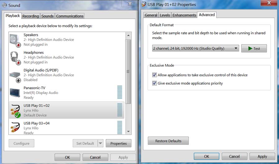 случае все настраивается на 24/192.