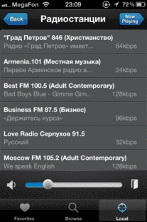 интернет-радио: vTuner || Цифровые обработки: эквалайзер, P.bass